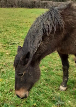 Étant poulain elle a recu un coup au postérieur gauche se qui ne la gène pas pour le moment mais avec l'âge elle devient plus faible et ca devient de plus en plus compliquer de passer l'hiver pour elle.